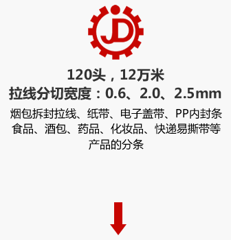LFT120頭拉線分條機,主要用來生產1萬米煙包、食品、酒包、藥品、化妝品、磁帶、快遞袋等產品的包裝合或包裝袋的拆封拉線。